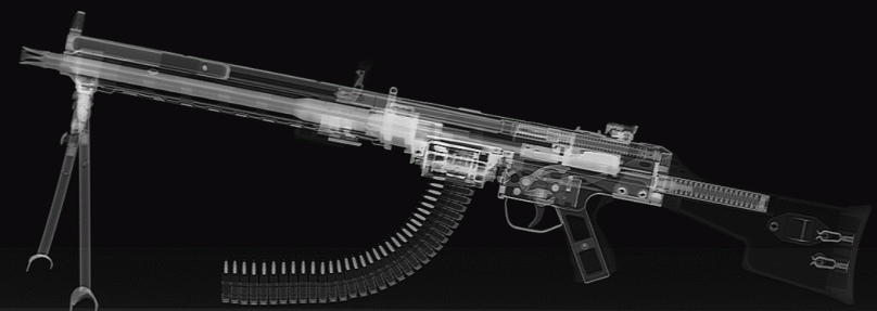 Submachine Guns are automatic rifles or pistols that fire pistol caliber ammunition. The credit for the first submachine gun will be bestowed on the Thompson SubMachine Gun. Even though the Germans (or their nefarious friends) were also secretly building submachine guns after WWI (MP-18, ...) and significantly advanced the technology in the years building up to WWII, the Thompson was first to be used in some quantities by both criminals and law enforcement in the US during the roaring 20s. With Elliot Ness and Frank Nitty shooting it out weekly with TSMGs on our TV screens as the FBI struggled to control the Chicago mob, how could we pick anything else?